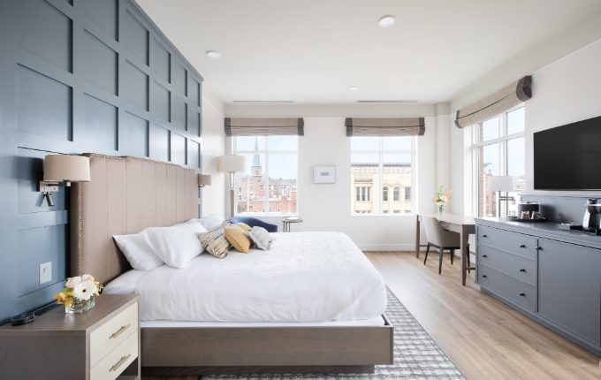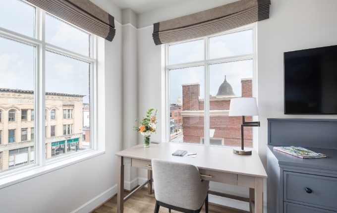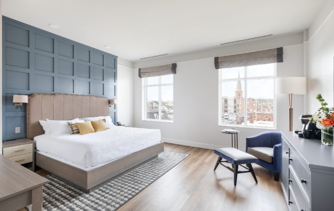 Our Luxury Rooms provide sanctuary in contemporary quarters, mixing a modern aesthetic with classic design touches to create a style that elevates the experience yet encourages relaxation. Expansive windows flood the spacious rooms with natural light, many of which offer State House and downtown views.